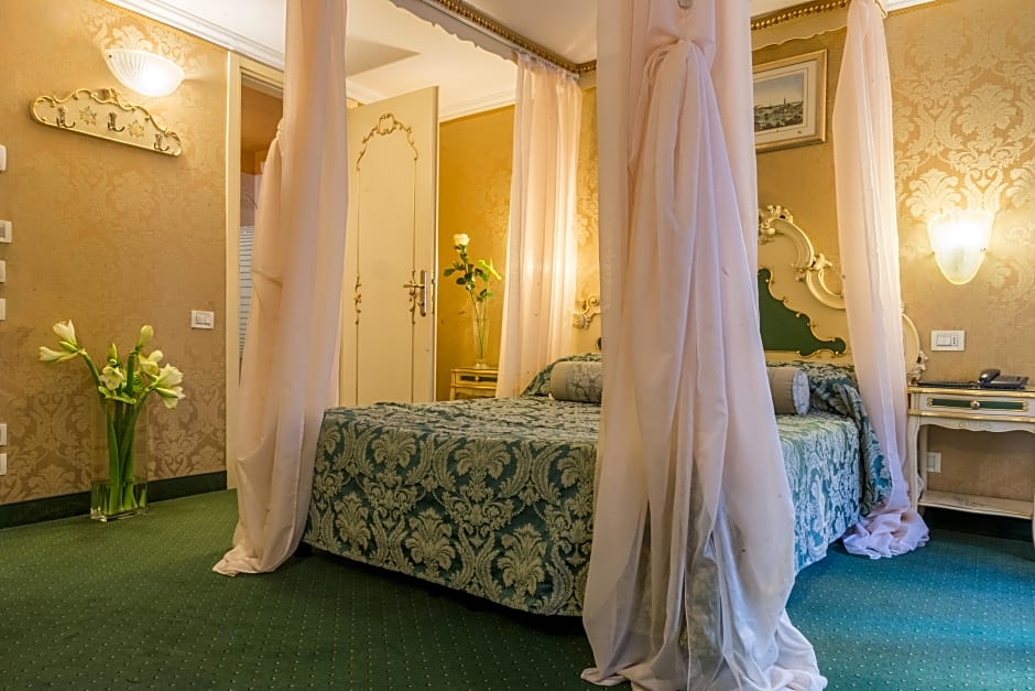 Air-conditioned room with satellite TV, a mini-bar, and carpeted floors.